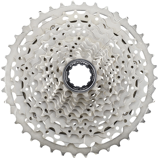Die SHIMANO M5100 11-fach-Kassette eignet sich optimal für Mountainbikes mit 1-fach- oder 2-fach-Kurbeln. Sie bietet auf den Fahrer abgestimmte Schaltstufen und damit eine maximale Kontrolle der Trittfrequenz in jedem Gelände.