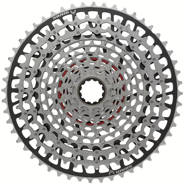 12-fach Eagle Transmission, Gang 1 aus Aluminium, Gang 2 - 3 aus gestanztem Stahl, Gang 4 - 12 aus vollständig, gefrästen, gehärteten Stahl, Kettenlinie 55 mm, passend für XD Freilaufkörper, schwarz / silber