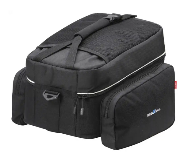 Extra geräumige Rackpack mit großem Hauptfach. Das Tourengepäck lässt sich im Haupt- und Innenfach und zwei großzügigen Seitentaschen übersichtlich und gut zugänglich verstauen. Der geöffnete Taschendeckel kann separat bepackt und der Inhalt durch ein Netz mit Reißverschluss gesichert werden. In einem Netzfach auf der Oberseite des Deckels lässt sich beispielsweise nasse Kleidung unterbringen. Zur Touring Ausstattung zählen außerdem der umlaufende Reflektor, ein komfortabler Schultergurt, die Regenhaube und der verstellbare Tragegriff.