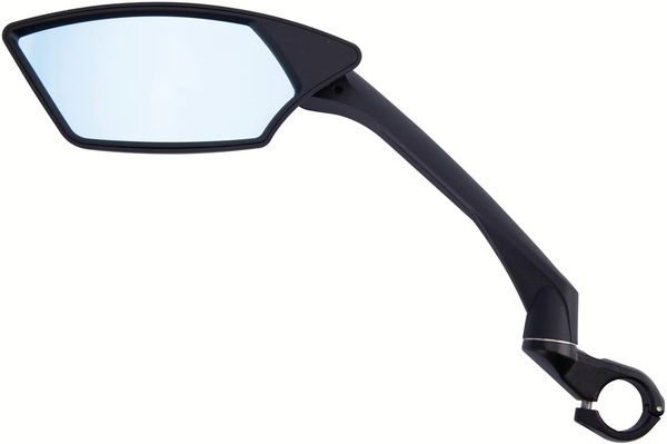 Durch das durchdachte Gelenk an der Schelle und den Versatz nach hinten ist der Spiegel auch mit gängigen E-Bike-Displays (z. B. Bosch Intuvia) kompatibel.